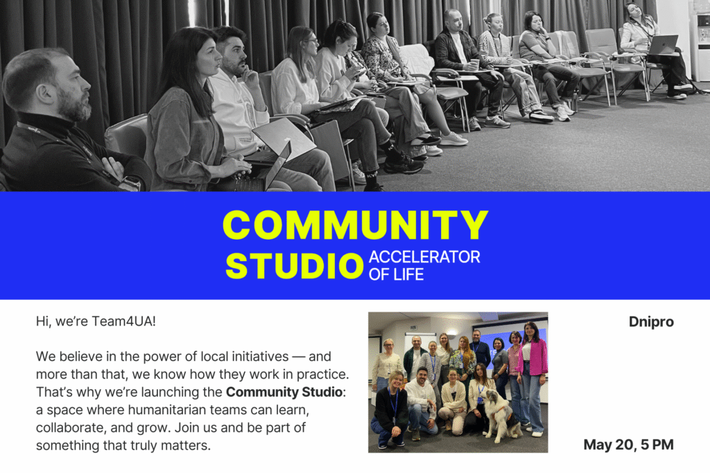 Team4UA, leading the TERA Consortium, and with the support of the Ukraine Humanitarian Fund, is pleased to invite you to the official opening of the Community Studio in Dnipro – a new initiative supporting local civil society organizations (CSOs) working in the most challenging humanitarian contexts across Ukraine.